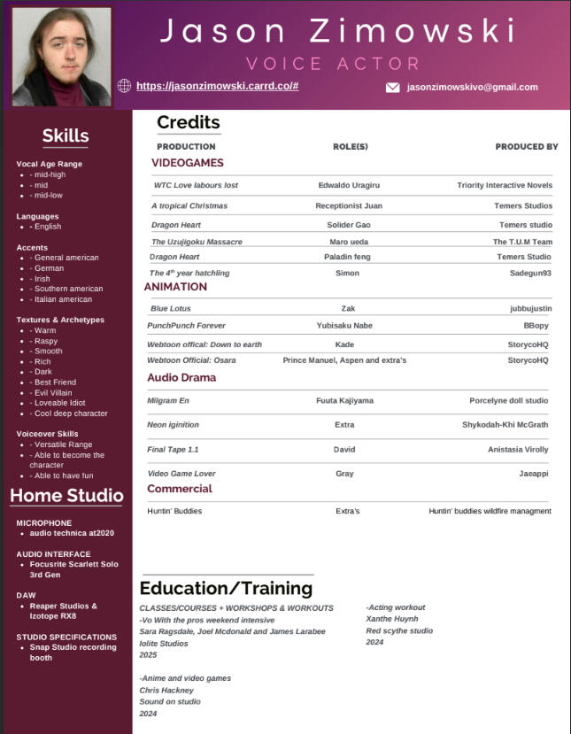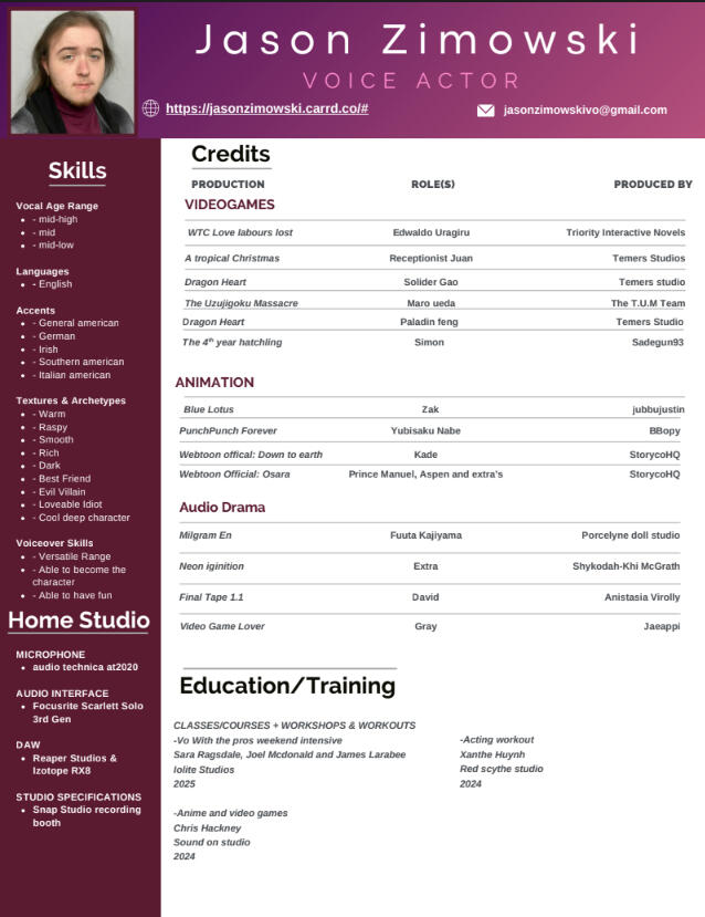 Jason Zimowski is a non-union, remote Voice actor not currently represented.